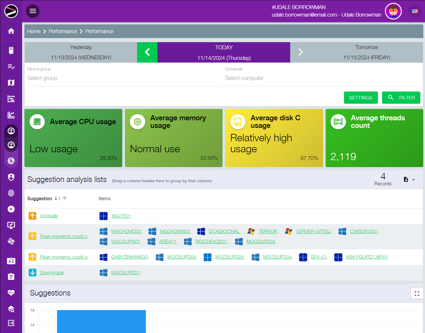 The platform identifies which machines require upgrades and which exceed actual user needs, even suggesting downgrades when appropriate. This helps balance performance and cost with greater precision.