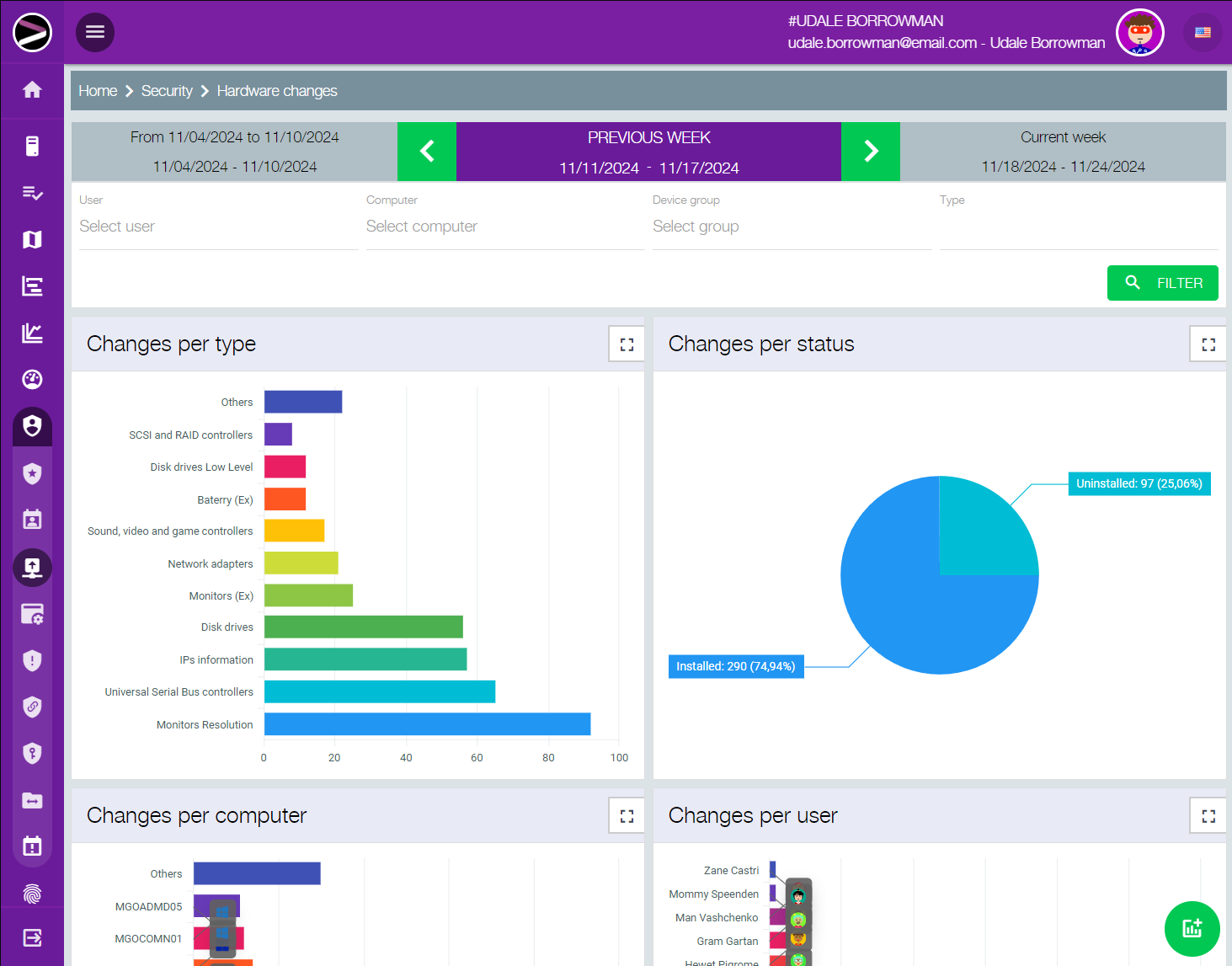 The platform increases environment traceability and helps identify suspicious situations involving removable devices, laptops, tablets, printers, and other vulnerable assets. This strengthens asset control and reduces exposure to fraud and loss.